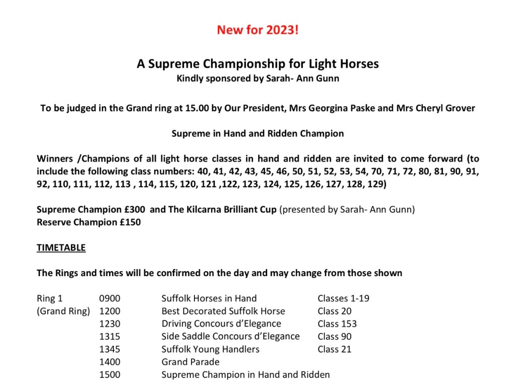 Remember…new for 2023 the Light Horse Supreme Championship sponsored by Sarah-Ann Gunn.